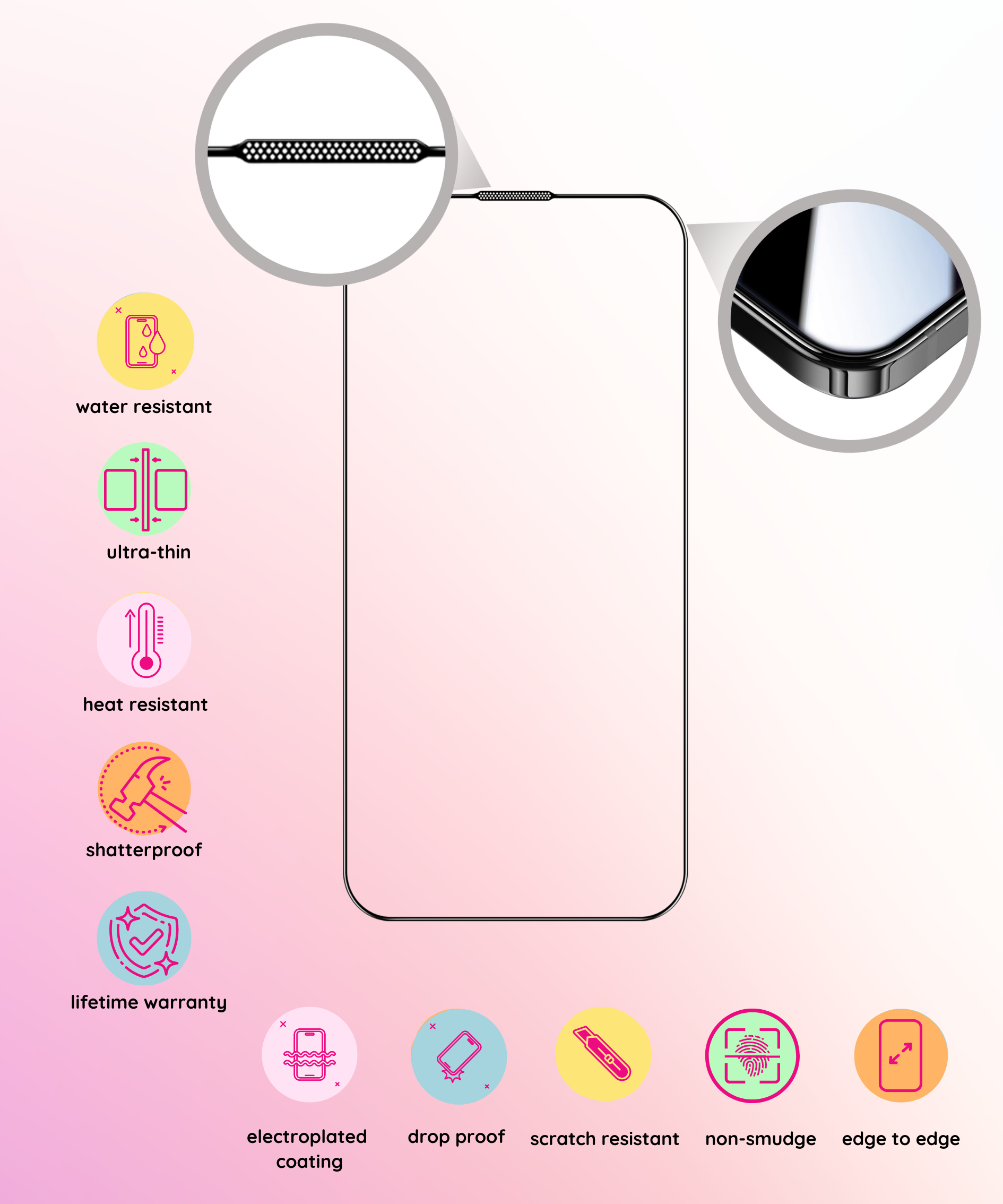 Keep your iphone screen flawless! Designed for maximum protection, our electroplated glass screen protector offers crystal-clear clarity and unmatched touch sensitivity, ensuring your screen remains vibrant and responsive.
